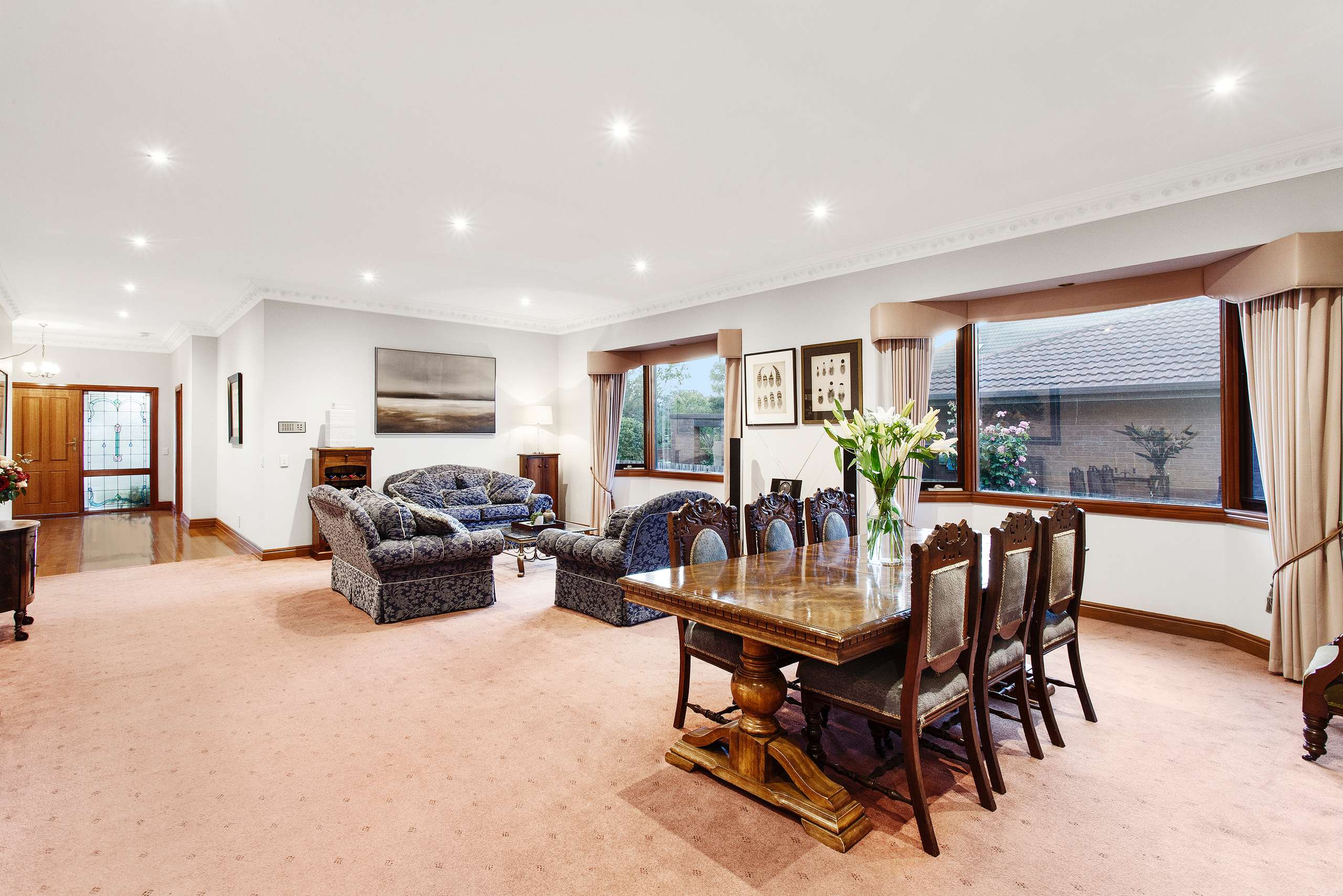 The extended kitchen & family room overlooks a deep back yard while sliding doors allow access to the lounge & dining rooms to accomodate guests when entertaining.