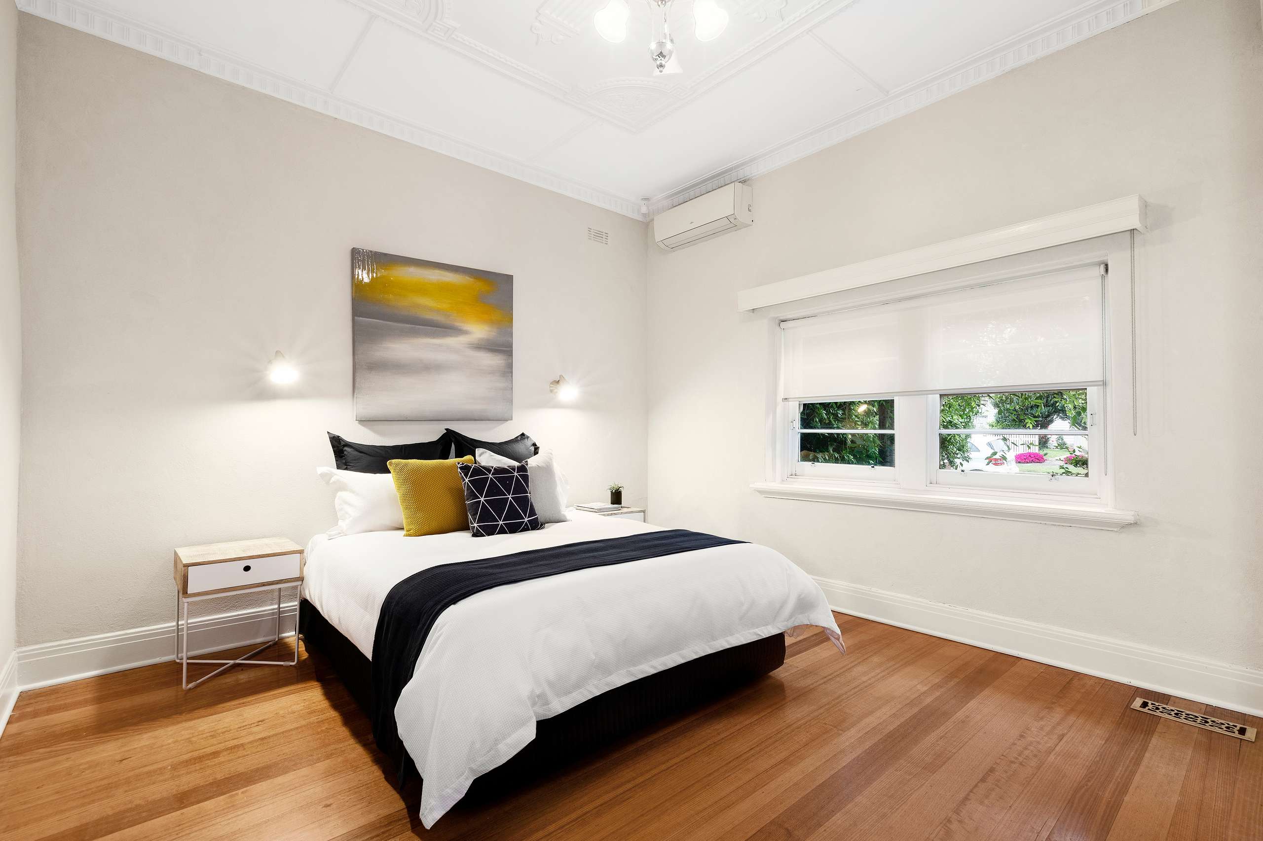 The north facing rear courtyard is an idyllic place for alfresco living with scope to make it your own in time. Captivating with its high ornate ceilings, plate ledges, picture rails and polished boards, this sweet retreat is complete with ducted heating, air conditioning, great storage and parking for 2.