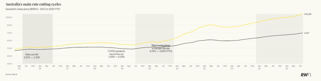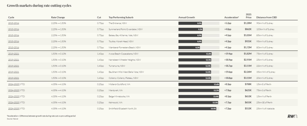 Three distinct interest rate cutting cycles since 2015 show how Australia’s housing affordability crisis has fundamentally changed which suburbs benefit most from lower rates.
