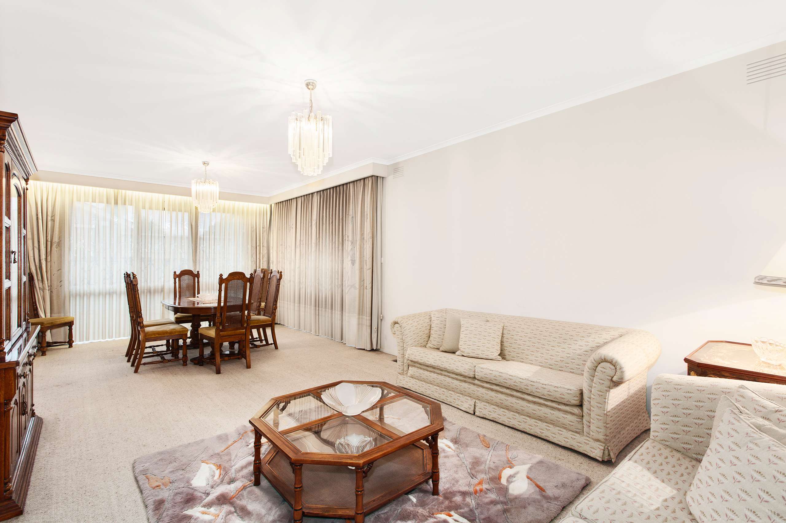 First time offered in 35 years, this light filled residence is superbly proportioned and enjoys floor to ceiling windows, while featuring a wide entry foyer with skylight, 3 great size bedrooms (BIRs, main – WIR & funky ensuite), a central bathroom with adjoining powder room, a sunken elegant lounge and dining room, casual family/meals area with vintage classic kitchen and matching laundry.