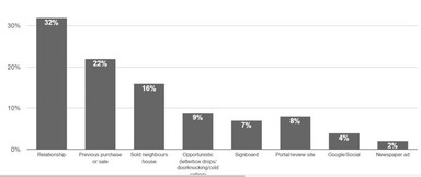 The results showed 32 per cent decided to list and sell with us because of a referral or recommendation. The next highest category was those who had bought or sold through us previously at 22 per cent. If you add in those who listed with us because we’d sold a neighbour’s house (16 per cent), that number lifts to a staggering 70 per cent. So 70 per cent of our listings came to us through relationships we already have which is wonderful to hear.